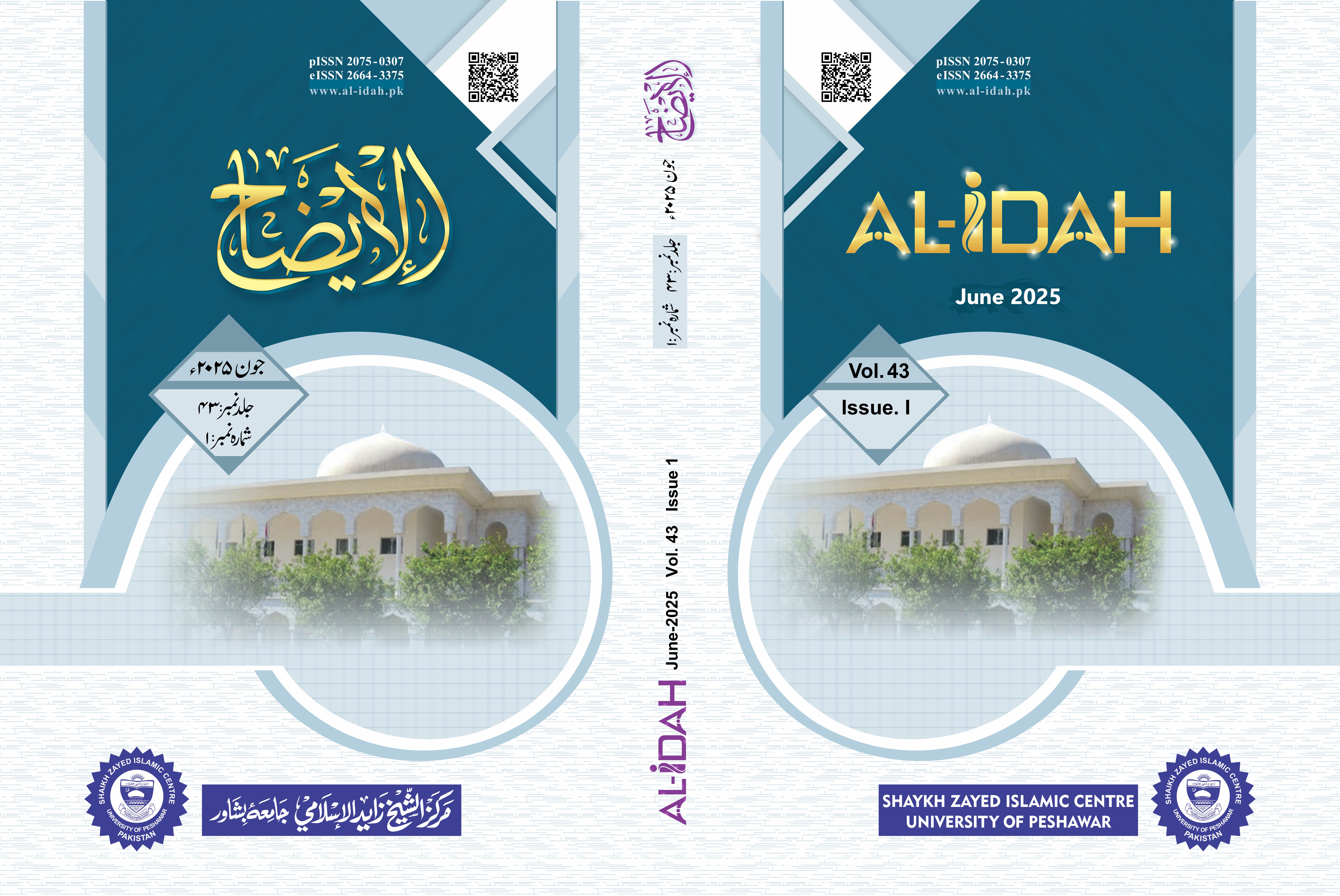 Vol 37 No - 1 (2019)All praise be to Almighty Allah, the latest Issue of “Al-Idah” is in your hands. Al-Idah is a research journal with pro-Islamic orientation. It publishes research articles in three languages simultaneously i.e. English, Urdu and Arabic. It offers a moderate approach and addresses modern day socio-political and other issues with religious bend of mind. Its worthy writers belong to diverse ethnic, national and academic background which further enriches its content. Al-Idah provides a forum for the scholarly articles and research papers. Here our complete focus is on religion and our approach is progressive and moderate. Our worthy contributors are noted researchers and scholars who approach the contemporary issues with keen insight and interest. I thank all my staff and contributors for making Al-Idah a success.